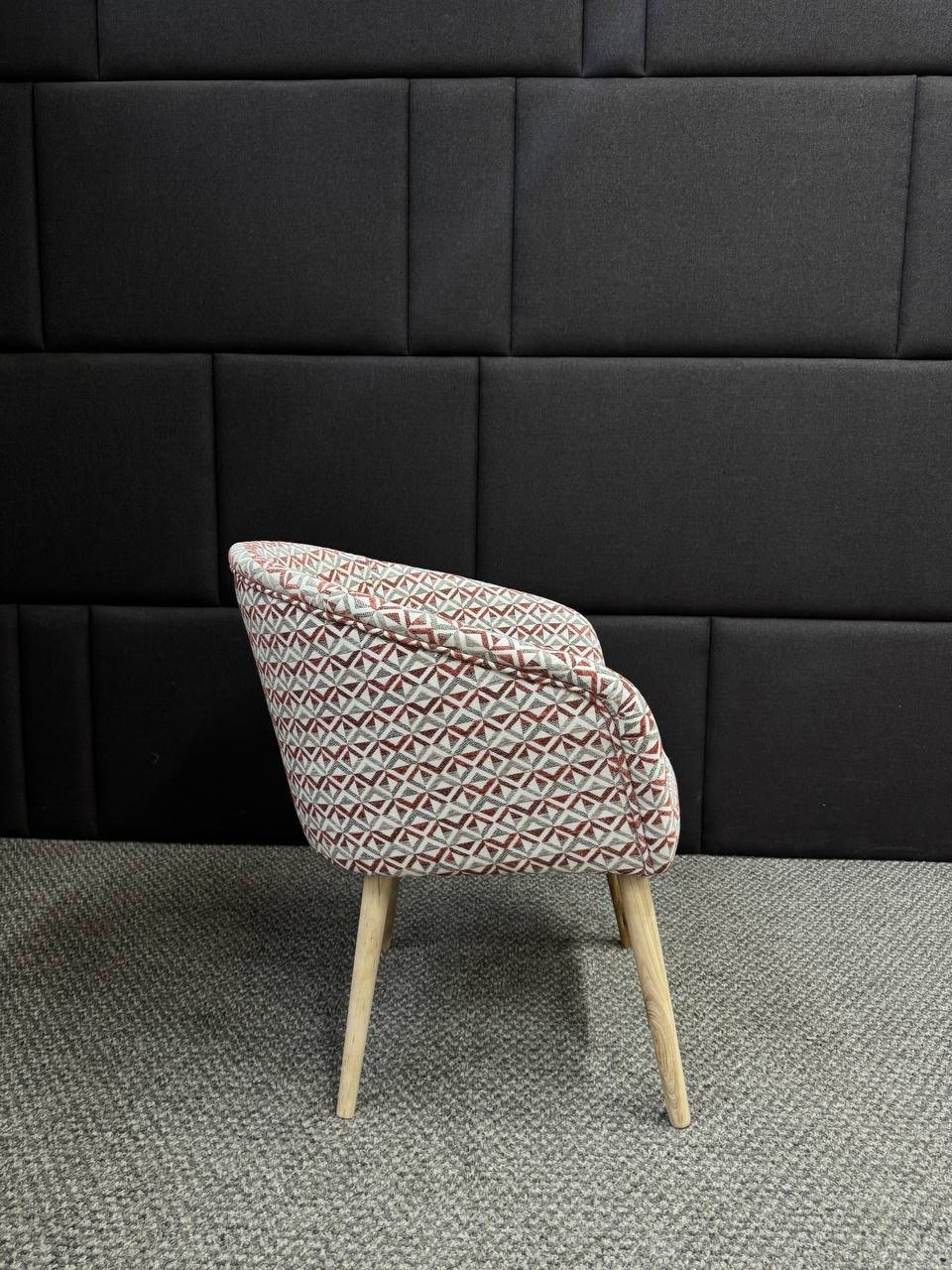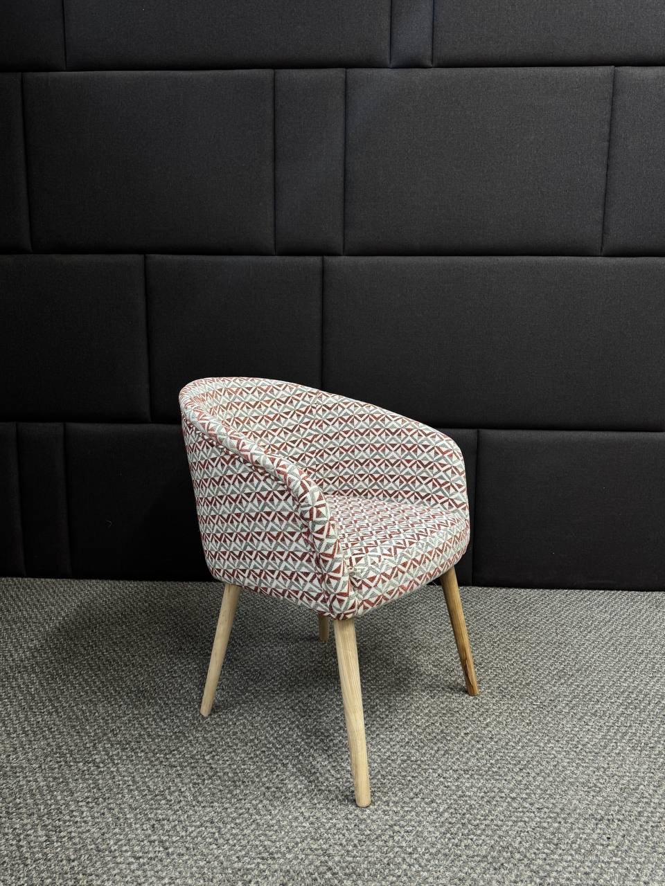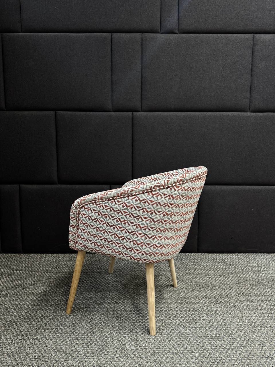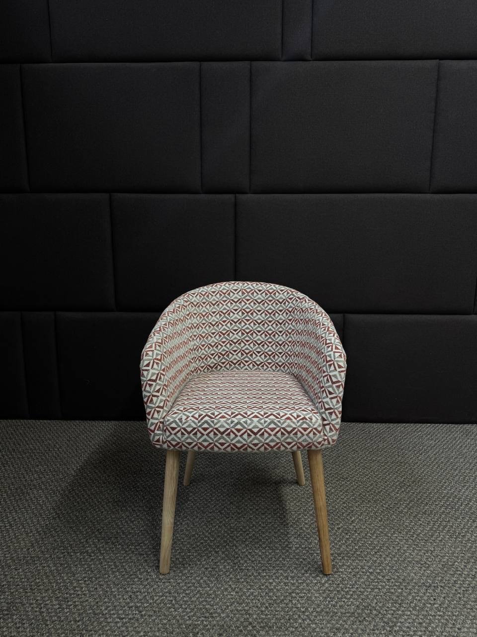 Завдяки компактним розмірам і продуманій формі, стілець «Calmo» чудово підходить як для обідньої зони, так і для робочого простору чи кафе. Оригінальний геометричний візерунок оббивки надає інтер’єру виразності та динаміки.