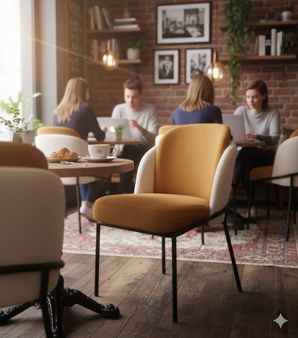 Сучасний стілець «Vibe» з м’яким сидінням, ергономічною спинкою та металевою основою від MEGASTYLE production – стильне рішення для ресторанів, барів і лаунж-зон.